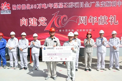 6月30日,由公司EPC總承包的榆神能化50萬噸/年煤基乙醇項目全廠總變中交暨向建黨100周年獻禮慶祝活動在總變現場舉行。