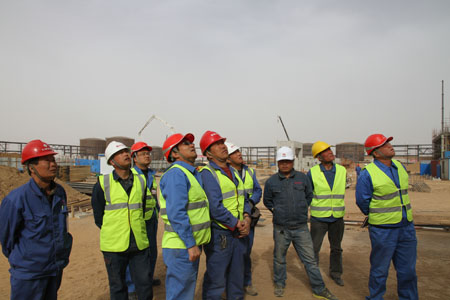 在煤-油共煉試驗示范項目工地,總包單位和業(yè)主安全管理人員進行安全檢查。