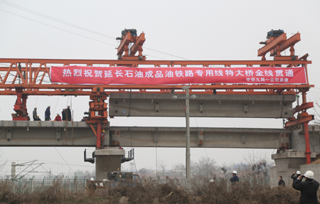 3月1日,延長石油西安成品油鐵路專用線特大橋全線貫通,該工程是延長石油延煉至西安成品油鐵路專用線配 套工程,被列為省重點建設項目之一,鐵路裝車能力達300萬噸/年。
